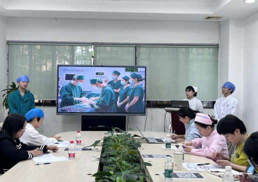 围绕《术中低体温的预防》,这支队伍以“保温即护命”为核心理念,系统讲解低体温的三大成因、四大危害与五项干预措施。实习生主讲理论,带教老师补充临床细节,配合温控设备实物展示与术中保温流程视频,展现了一体化、精细化的围术期护理理念。师生共同强调:“每一度体温的守护,都是对生命的郑重承诺。”