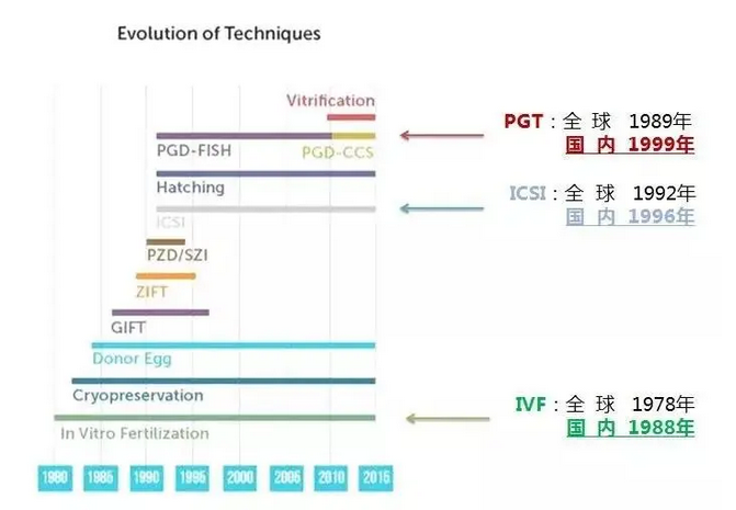 纵观辅助生殖技术的发展历程(见下图),全球首例“第三代试管婴儿”诞生在1989年,比“第二代试管婴儿”还早了3年。