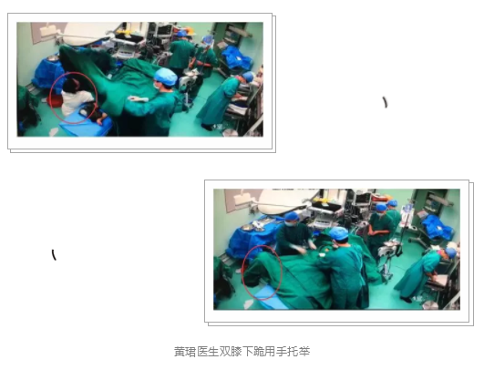 “脐带脱垂!臀位、左足先露!经产妇,脐带血管搏动好!”气喘吁吁的黄珺医生在手术台旁一边汇报病情,一边双膝跪下继续托举,虽然她很想和同事们一起加入这场 “生死营救”,但她清楚的明白,她不能动,她手中托举的是一个微小而脆弱的生命 。